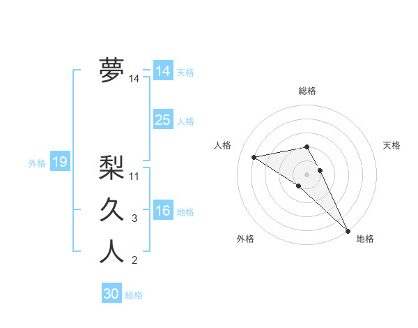 夢 梨久人さんの地格は16画の5点!