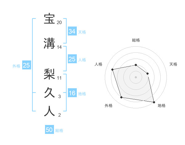 宝溝 梨久人さんを姓名の画数から五運を鑑定