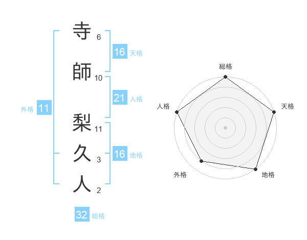 寺師 梨久人さんの総格は32画の5点!