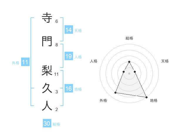 寺門 梨久人さんを姓名の画数から五運を鑑定