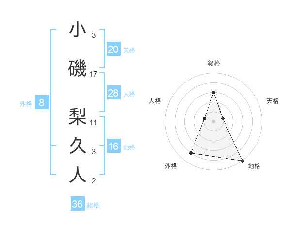 小磯 梨久人さんの天格は20画の1点!