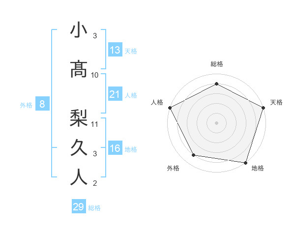 小髙 梨久人さんの総格は29画の4点!