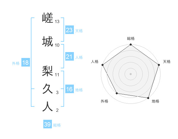 嵯城 梨久人さんを姓名の画数から五運を鑑定