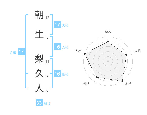 朝生 梨久人さんの天格は17画の4点!
