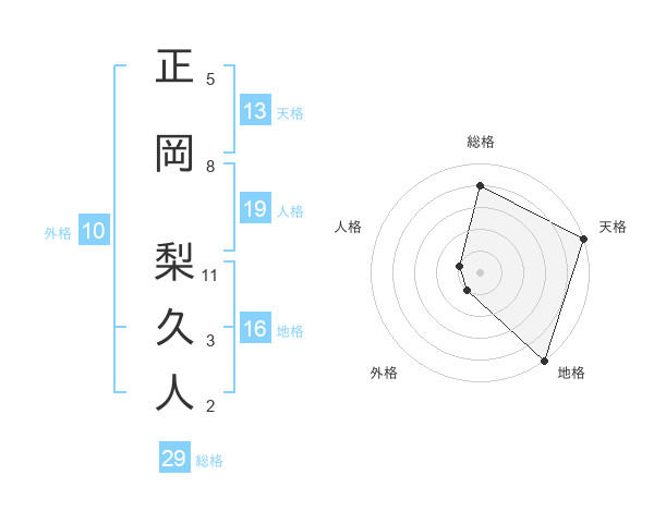 正岡 梨久人さんの天格は13画の5点!