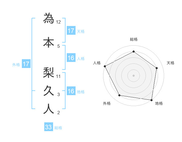 為本 梨久人さんの総格は33画の4点!
