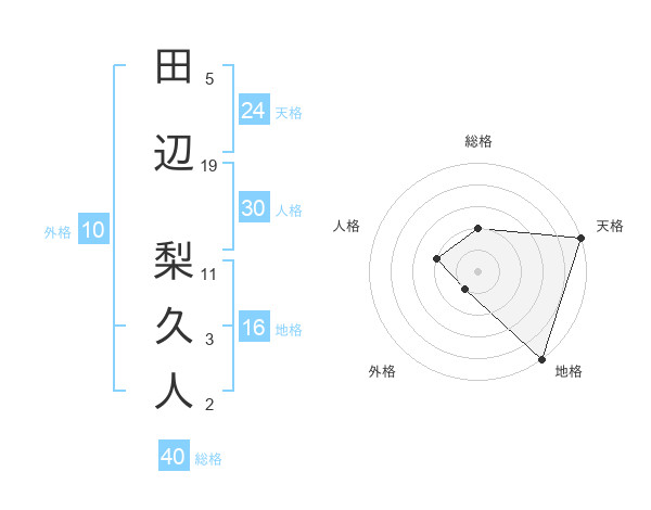 田辺 梨久人さんの総格は40画の2点!