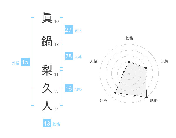 眞鍋 梨久人さんの名前の鑑定結果は!