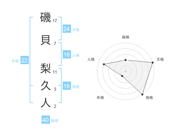 磯貝 梨久人さんの外格は22画の1点!