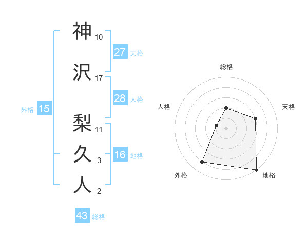 神沢 梨久人さんを姓名の画数から五運を鑑定
