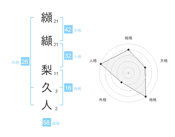 纐纈 梨久人さんの外格は26画の2点!
