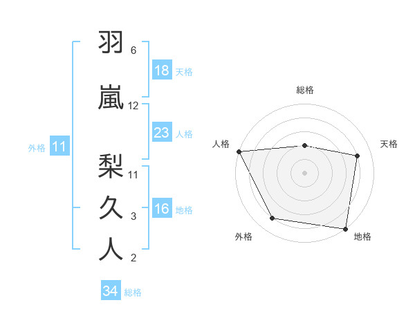 羽嵐 梨久人さんの外格は11画の4点!