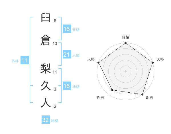 臼倉 梨久人さんの総格は32画の5点!