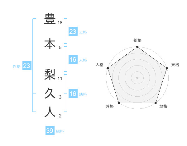 豊本 梨久人さんの外格は23画の5点!