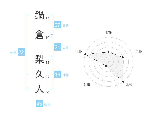 鍋倉 梨久人さんを姓名の画数から五運を鑑定