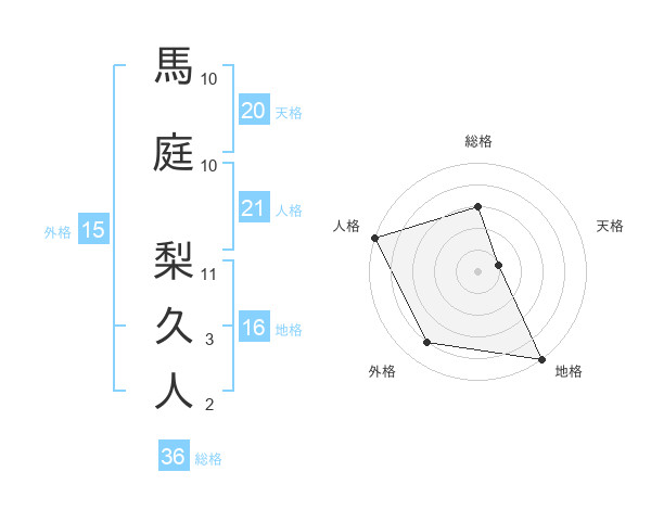 馬庭 梨久人さんを姓名の画数から五運を鑑定