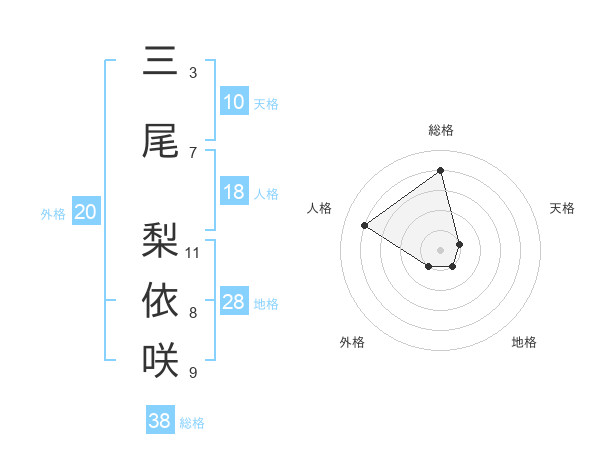 三尾 梨依咲さんを姓名の画数から五運を鑑定