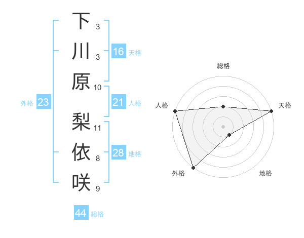 下川原 梨依咲さんを姓名の画数から五運を鑑定