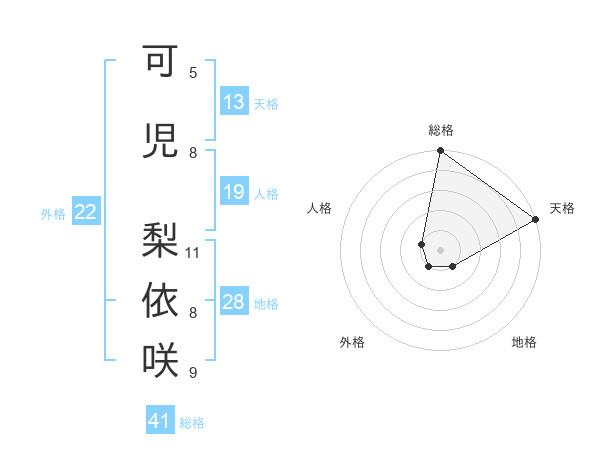 可児 梨依咲さんの外格は22画の1点!
