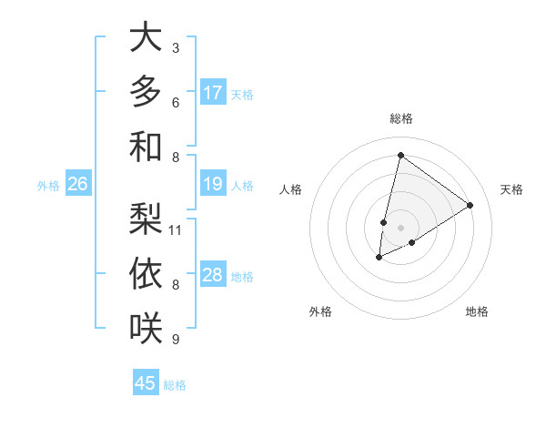 大多和 梨依咲さんを姓名の画数から五運を鑑定