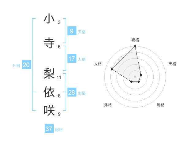 小寺 梨依咲さんの総格は37画の5点!