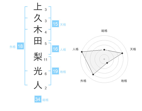 上久木田 梨光人さんを姓名の画数から五運を鑑定
