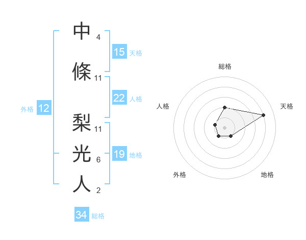 中條 梨光人さんを姓名の画数から五運を鑑定