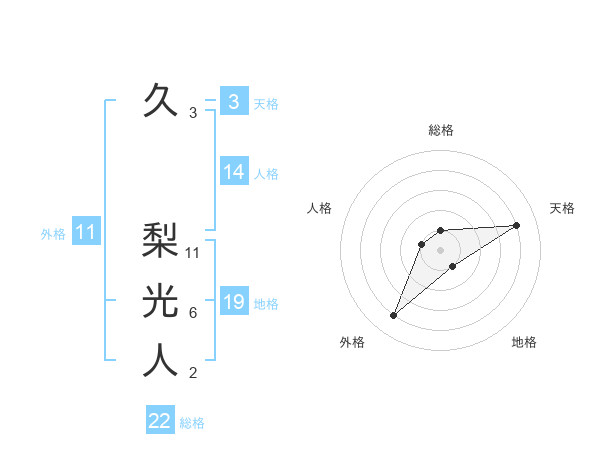 久 梨光人さんの総格は22画の1点!
