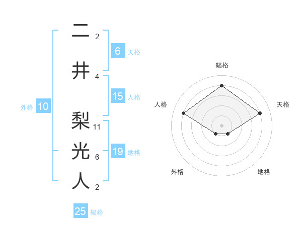 二井 梨光人さんの総格は25画の4点!