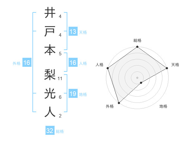 井戸本 梨光人さんを姓名の画数から五運を鑑定
