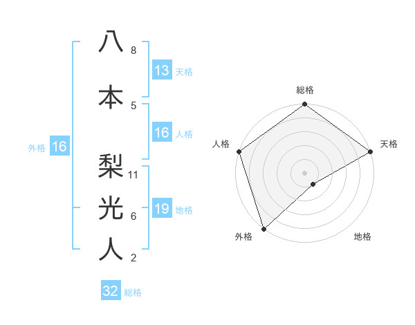 八本 梨光人さんを姓名の画数から五運を鑑定