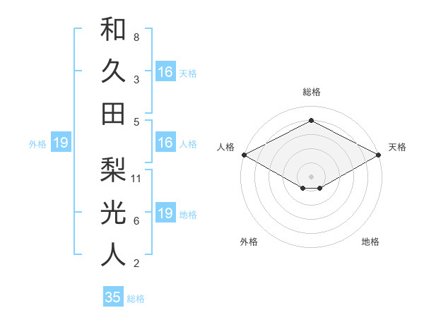 和久田 梨光人さんを姓名の画数から五運を鑑定