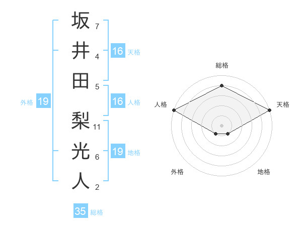 坂井田 梨光人さんの総格は35画の4点!