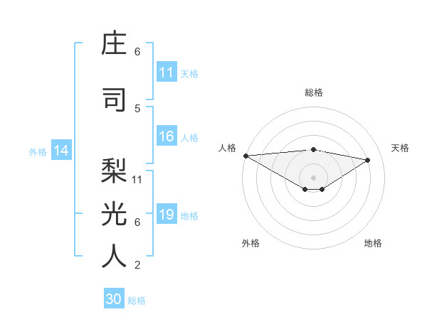 庄司 梨光人さんの総格は30画の2点!