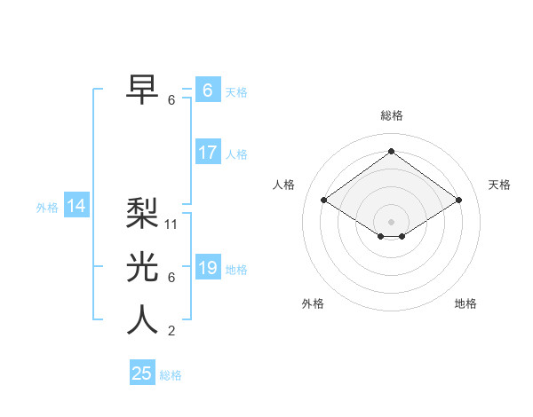 早 梨光人さんの総格は25画の4点!