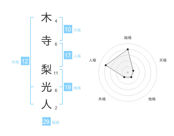 木寺 梨光人さんの総格は29画の4点!