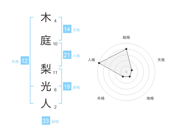 木庭 梨光人さんの総格は33画の4点!