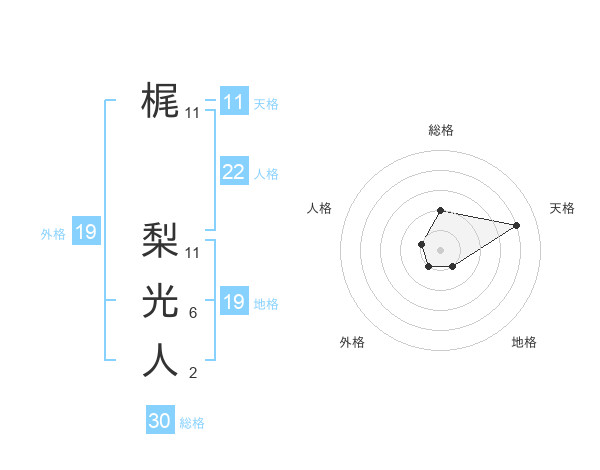 梶 梨光人さんの総格は30画の2点!