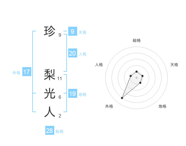 珍 梨光人さんの総格は28画の1点!