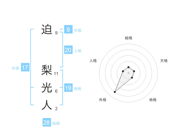 迫 梨光人さんの総格は28画の1点!