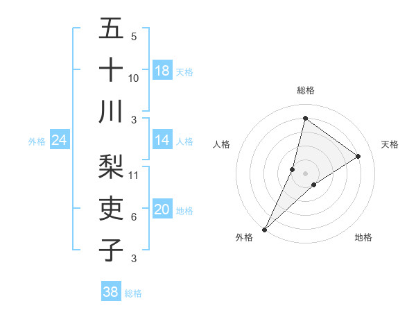 五十川 梨吏子さんを姓名の画数から五運を鑑定