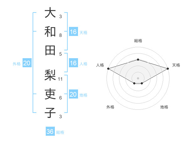 大和田 梨吏子さんの天格は16画の5点!