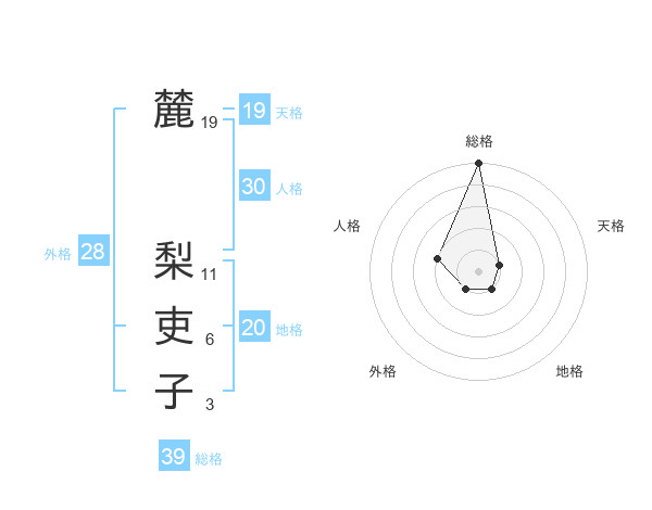 麓 梨吏子さんを姓名の画数から五運を鑑定