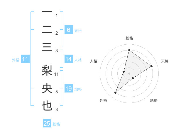 一二三 梨央也さんを姓名の画数から五運を鑑定
