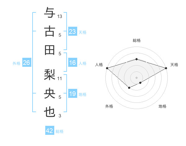 与古田 梨央也さんを姓名の画数から五運を鑑定