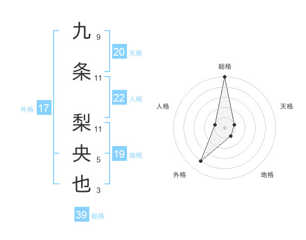 九条 梨央也さんを姓名の画数から五運を鑑定