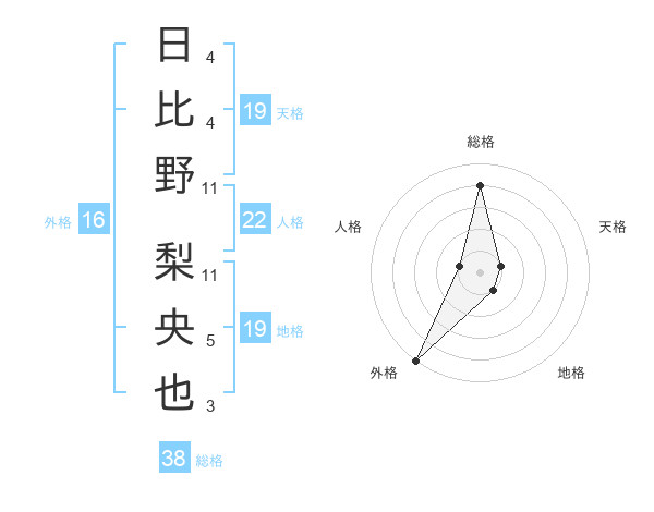 日比野 梨央也さんを姓名の画数から五運を鑑定