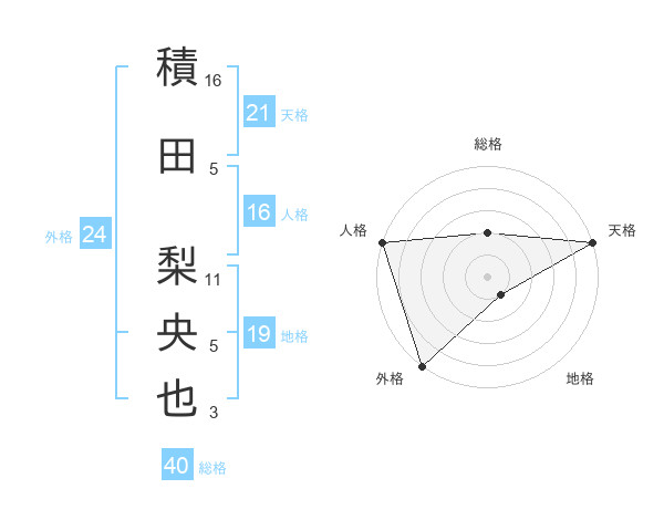 積田 梨央也さんの外格は24画の5点!