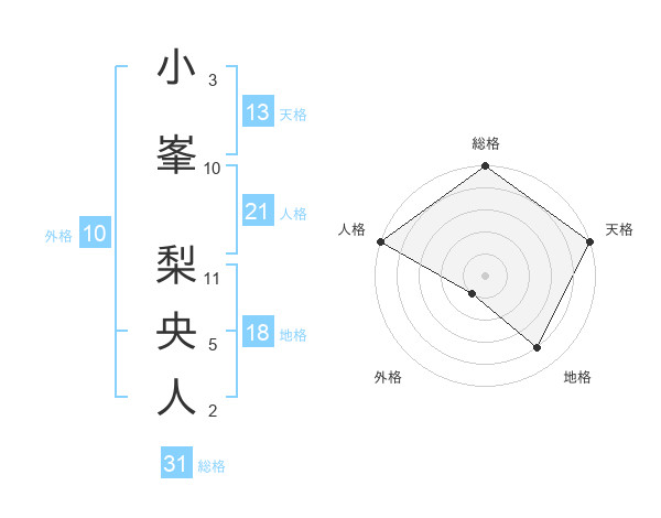 小峯 梨央人さんの総格は31画の5点