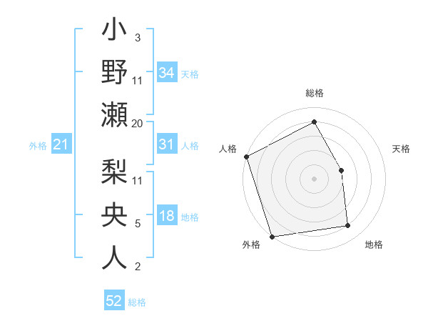 小野瀬 梨央人さんを姓名の画数から五運を鑑定